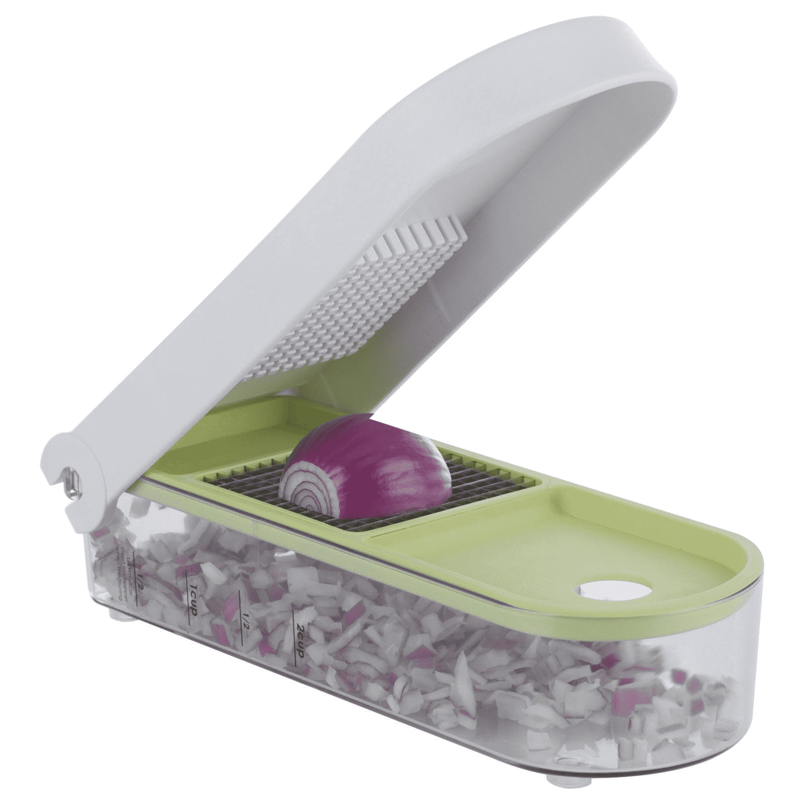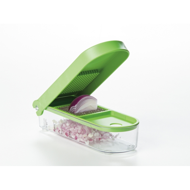 - Includes three plates with four cutting options: mince, chop, spiral ribbon cut and spiral julienne cut