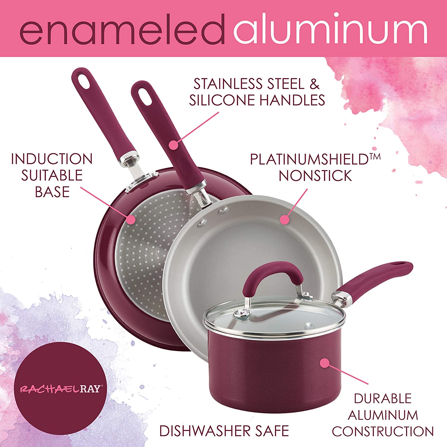 Rachael Ray 13 Piece Burgundy Shimmer Nonstick Cookware Pots and Pans Set