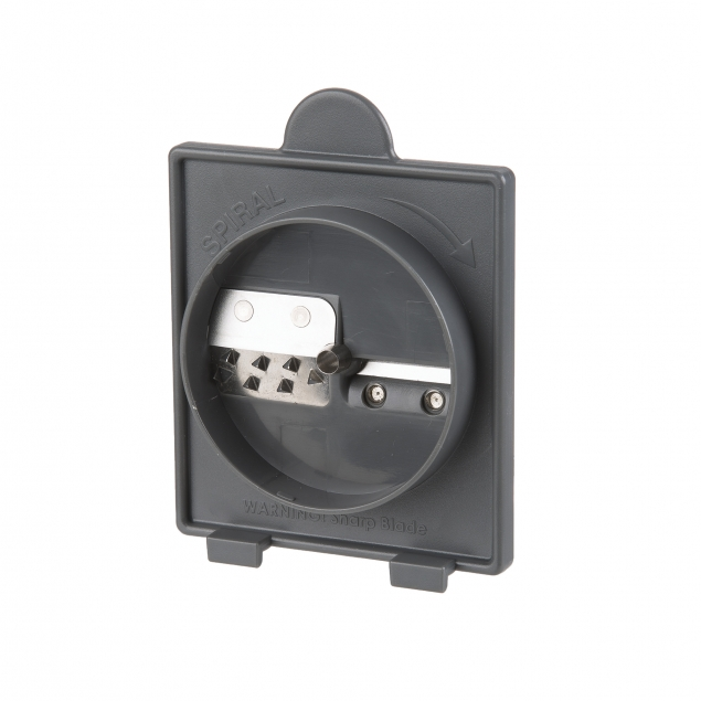 - Includes three plates with four cutting options: mince, chop, spiral ribbon cut and spiral julienne cut